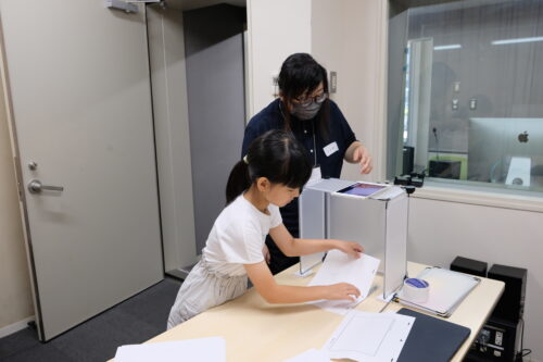 映画タイムマシンvol.13 作画アニメーションワークショップ② 20250808 2025.08.08 (金) 作画アニメーションワークショップは 朝にアニメーションをみて、それからスタート! アニメーションの説明をうけて、3つの画をかきます。 どう動きをつけるかがポイントなので、しっかりアドバイスをもらいます。 本番の紙に描いたら、つぎは撮影です。 一枚一枚撮影していきます。 完成まで、アニメーションを見ながら待ちました。 完成作品はみんなで鑑賞しました。 作品はこちらです!