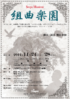 | ステップスについて | ミュージカル劇団「Steps」(ステップス)は、30年にわたりオリジナル・ミュージカルを創り続けている横山由和を中心としたカンパニーです。 ひとりでも多くの方に感動を伝えたい… その思いからStepsは従来の枠にとらわれることなく、自由な発想で、誰もが心から楽しめ、身近に親しんでいただけるエンターテイメントを目指し、設立以降、翻訳物や輸入物ではなく、世代や性別を超えた次世代へとつながるオリジナル作品の上演を続け、日本人の目線で捉えたテーマを分かり易いストーリーでお届けする「心」を揺さぶるミュージカルをお届けしております! <近年の公演実績> 2012年Steps Live 2012 ジャズ&ミュージカル! 2011年Steps Musical「boy be …」 (首都圏ブロック演劇鑑賞会例会、浜松高校演劇教室公演、他) 2010年Steps Musical「覗きからくり遠眼鏡」 (紀伊國屋サザンシアター、他) 2009年Steps Musical「ヴェローナ物語」 (紀伊國屋サザンシアター、他) 2008年Steps Musical「Woman~源氏物語より~」 (川崎市アートセンター アルテリオ小劇場) |