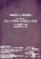 | チケット代金 | ミュージカル研究チーム公演カンパチケット1枚1500円(AB共通) ショー形式イベント『ミュージカル・トリビュート☆』(入場無料) |