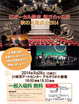 ボーカル教室の歌唱発表会。生演奏をバックにしたステージで、日頃の練習の成果を存分に発揮いたします。一般の方のご観覧、応援も、大歓迎!