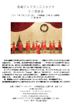 オープニングには明るく華やかなミュージカルナンバーを。 ジュニアクラスによる「メリーさんのひつじ」「パパラブズマンボ」 ダンスナンバー「 Voises」 ソロナンバー「Lady Marmalade」 懐かしい「ありがとう」 フィナーレにはBob Morleyの「One Love」 などなど、35分間ほっこりと楽しんでいただけたらと思います。