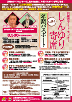 | 公演日時 | 2022年 6月25日(土)、8月27日(土)、10月22日(土)、 2023年 1月21日(土)、3月11日(土) [開演]14:00[開場]13:30 ※日程は変更になる場合がございます。 ※しんゆり寄席は今年度より年間5回の開催となりました。 ※未就学児童のご入場はご遠慮ください。 |