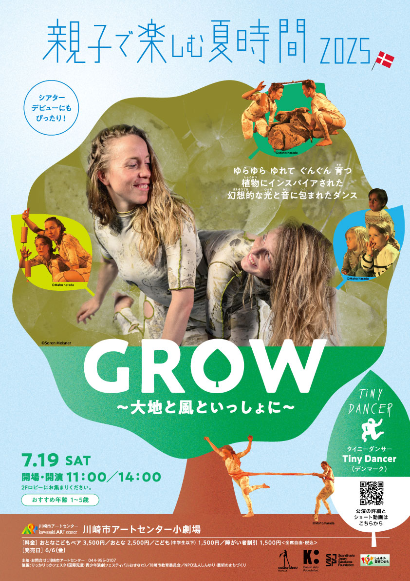 | 主催・お問合せ:川崎市アートセンター 044-955-0107 共同プロデューサー:Aaben Dans(アーベンダンス) 助成:Danish Arts Foundation(デンマーク芸術財団)/スカンジナビア・ニッポン ササカワ財団 後援:りっかりっかフェスタ(国際児童・青少年演劇フェスティバルおきなわ)/川崎市教育委員会/ NPO法人しんゆり・芸術のまちづくり <他地域での公演> ・京都公演 7月21日(月・祝) 会場:京都市西文化会館ウエスティ 創造活動室 23日(水) 会場:京都市東部文化会館 創造活動室 ・沖縄公演 7月27日(日)~29日(火)りっかりっかフェスタ2025 | |